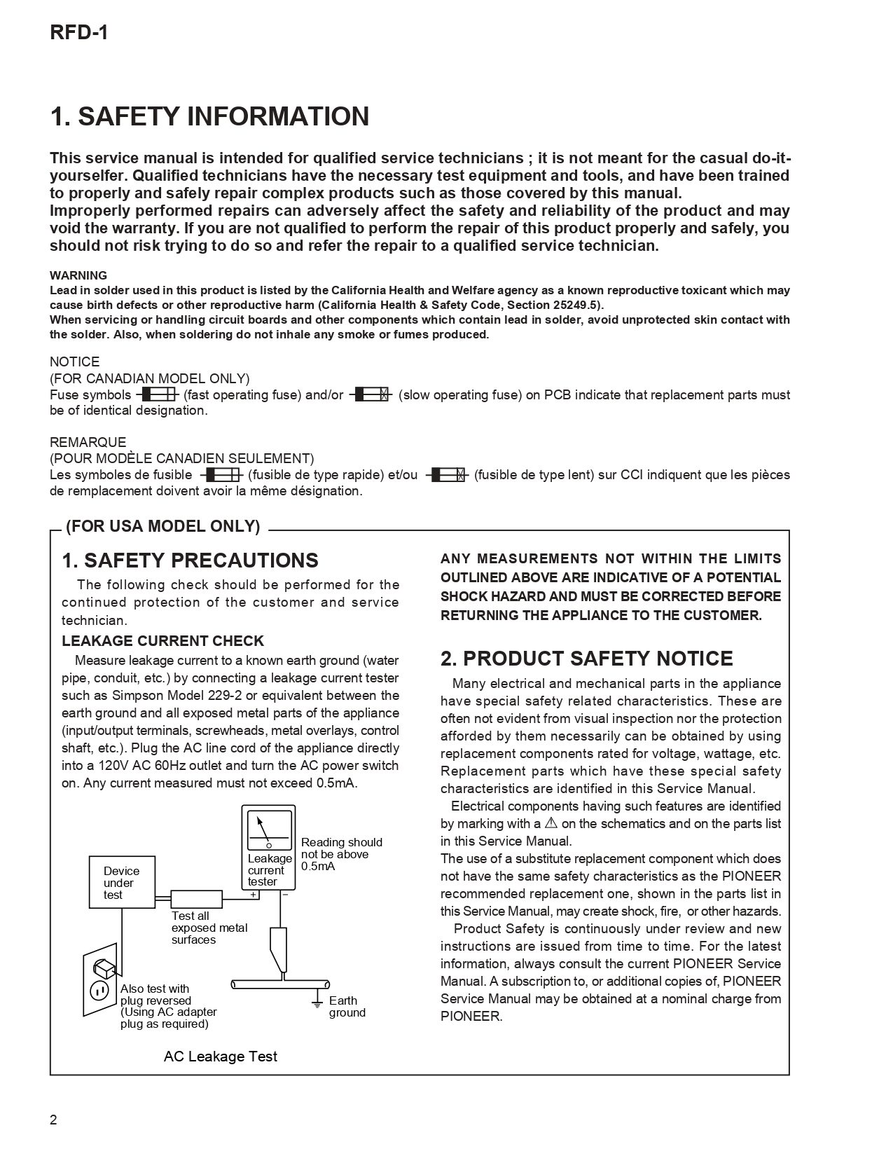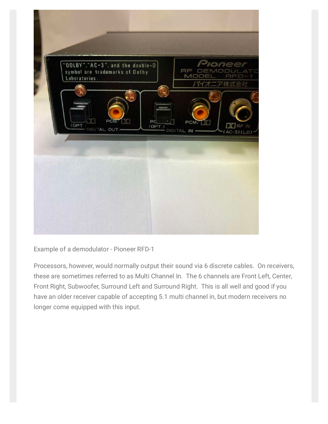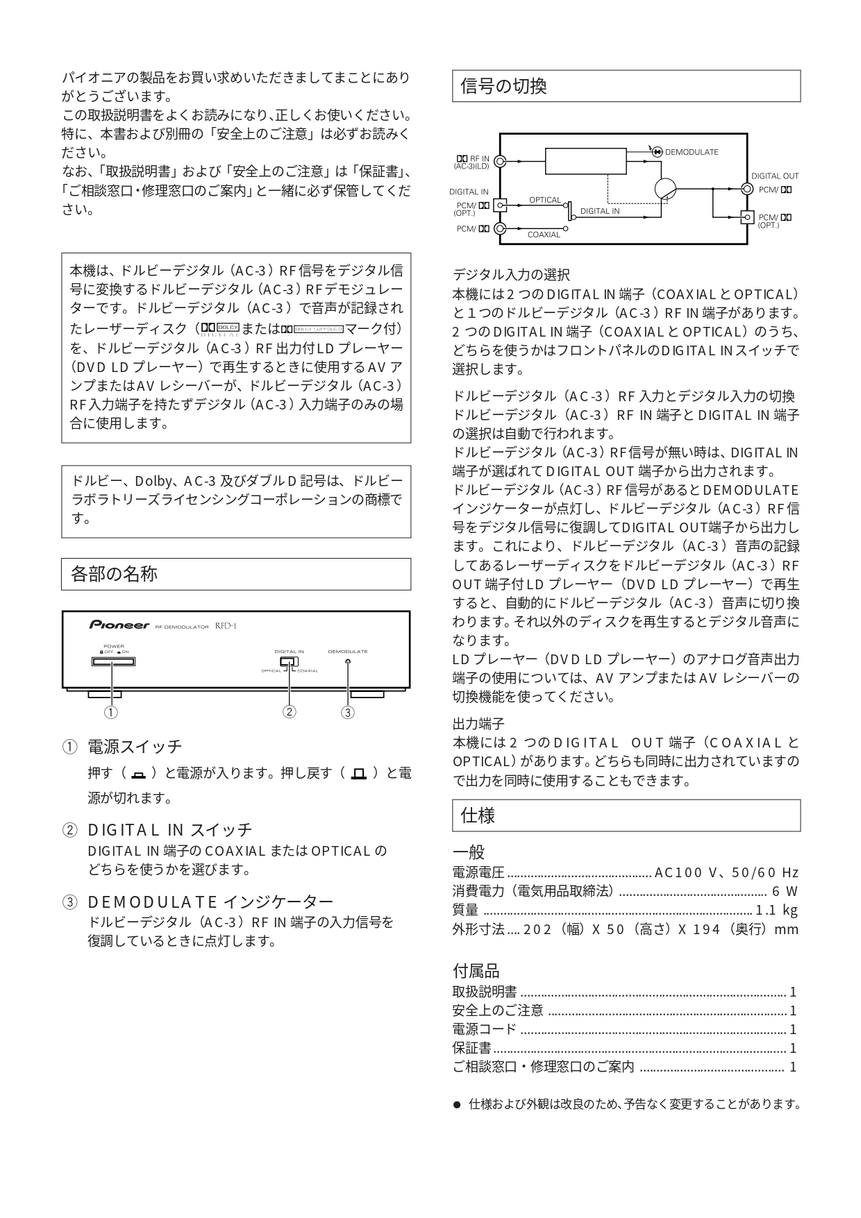 Pioneer RFD-1 RF Demodulator Service Manual Instant Download (Includes Service and Operating Instructions)