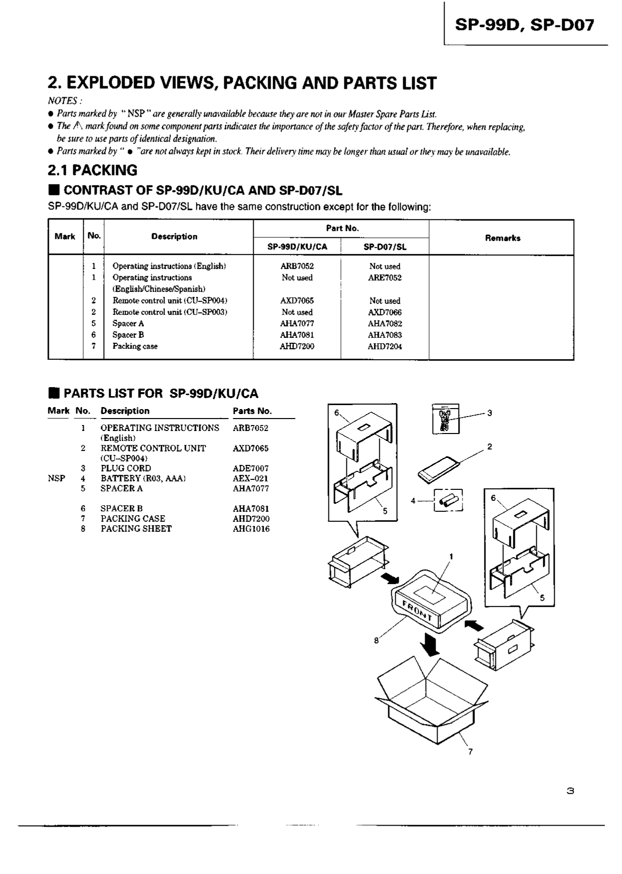PIONEER Service Manual DOLBY SURROUND AC-3 & PRO LOGIC PROCESSOR SP-99D SP-D07
