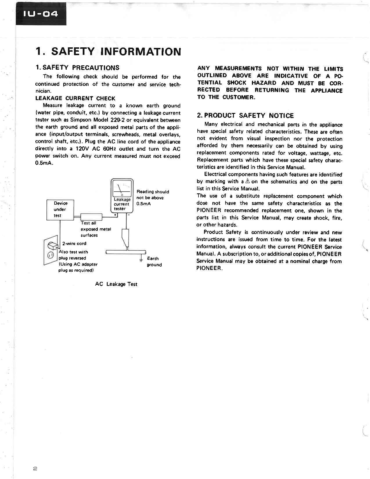 Pioneer IU-04 Video Disc Interface Service Manual – Instant download