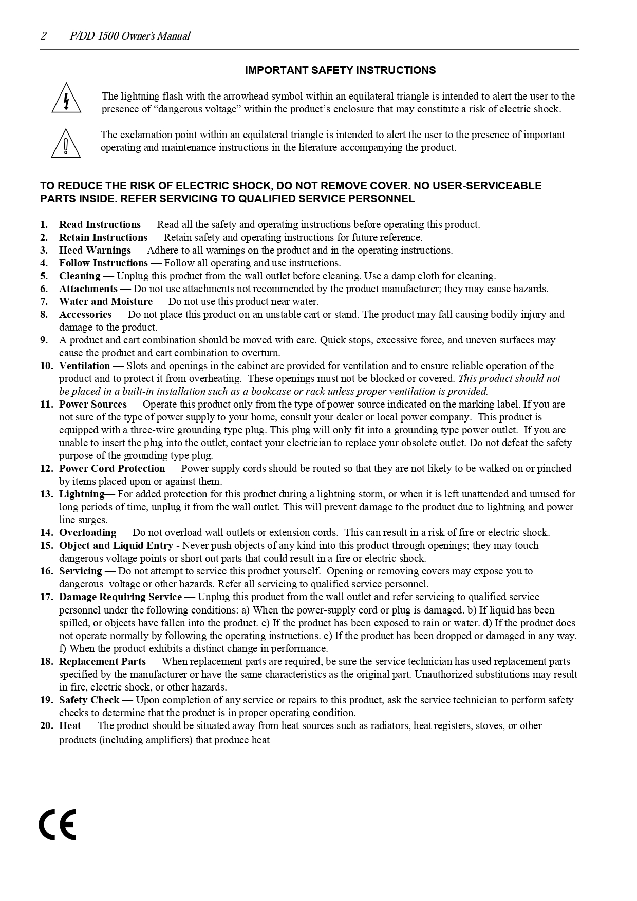 PARASOUND P/DD-1500 Digital Surround Processor Owner’s Manual (Instant Download)
