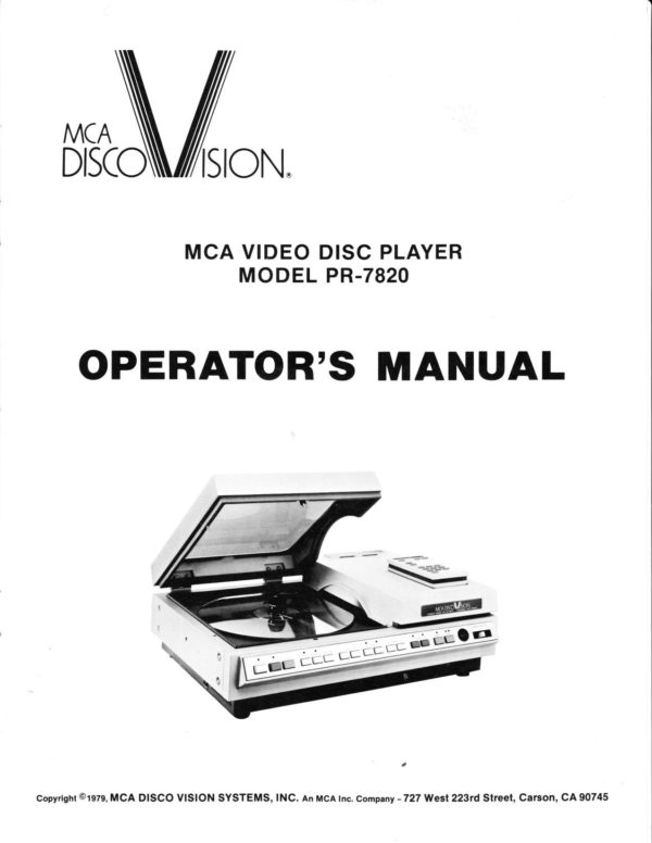This is the instant download of the complete Operator’s Manual for the MCA DISCOVISION MCA VIDEO DISC PLAYER MODEL PR-7820. This comprehensive guide serves as an invaluable resource for both new and experienced users of the PR-7820, providing detailed instructions on setup, operation, and maintenance. The manual begins with a thorough introduction to the player, outlining its key features and specifications, ensuring users have a clear understanding of its capabilities. It then progresses to the installation section, which offers step-by-step guidance on unpacking, connecting the player to a television, and setting up the power supply. The manual’s core focus is on the operation of the PR-7820, covering everything from basic playback functions to advanced features such as Still/Freeze Frame, Frame Advance, and Chapter Search. These features, unique to the MCA DISCOVISION system, are explained in detail, empowering users to fully explore the interactive potential of their videodiscs. The manual also includes a dedicated section on maintenance, providing practical advice on cleaning the player and troubleshooting common issues. This ensures that users can keep their PR-7820 in optimal condition, extending its lifespan and maintaining its performance. The inclusion of warranty information further adds to the manual’s utility, offering peace of mind and guidance on how to seek support if needed. Overall, this manual is an essential companion for any owner of the MCA DISCOVISION MCA VIDEO DISC PLAYER MODEL PR-7820, offering a wealth of knowledge and practical advice to enhance their videodisc experience.