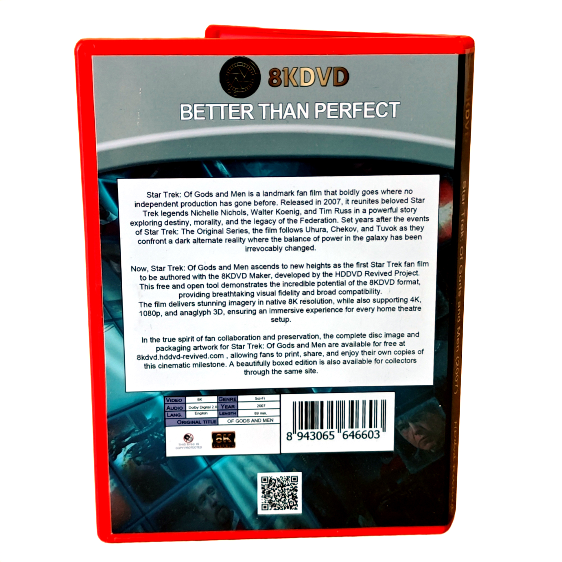 Star Trek: Of Gods and Men is a landmark Star Trek fan film, presented here as a free 8KDVD Digital Edition. Unlike other releases, this title is not sold as a boxed physical product. Instead, the complete 8KDVD ISO and all associated packaging artwork are available to download at no cost (conforming to regulations about Non commercial, we made it so we could enjoy it in our tests and did the artwork to give away free for your enjoyment).